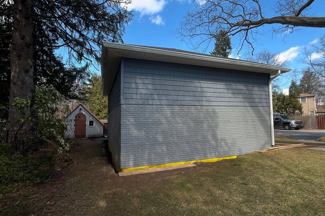 - Siding and Faux Brick Panels: One of the garages received a complete makeover with brand new siding, providing a sleek and modern finish. For the other garage, we installed new faux brick panels. These panels offer the classic, timeless look of brick without the high cost and maintenance, adding a touch of rustic charm and architectural interest to the property.
